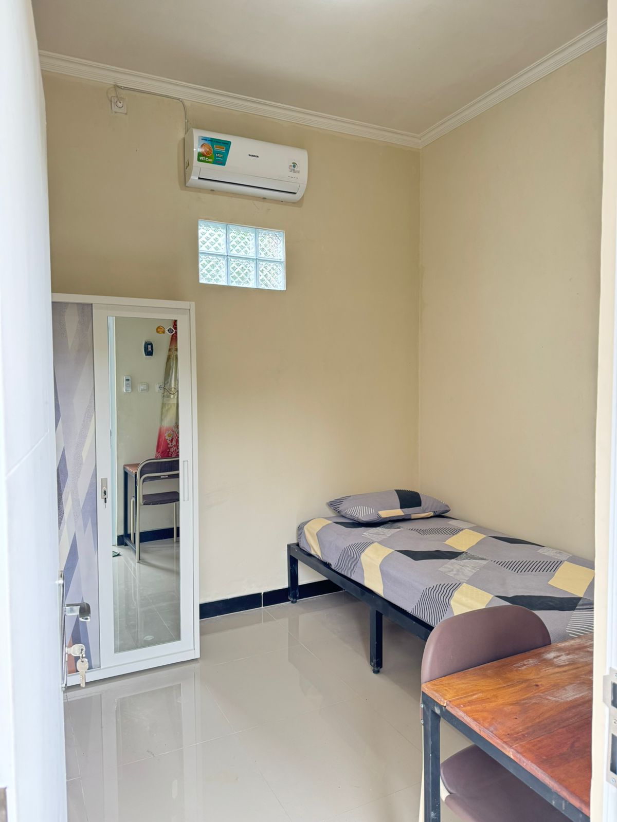 Kami menyediakan fasilitas kamar yang fully furnished (tempat tidur, meja belajar, lemari, AC), dapur bersama, kamar mandi dalam setiap kamar, dan parkir luas yang aman.